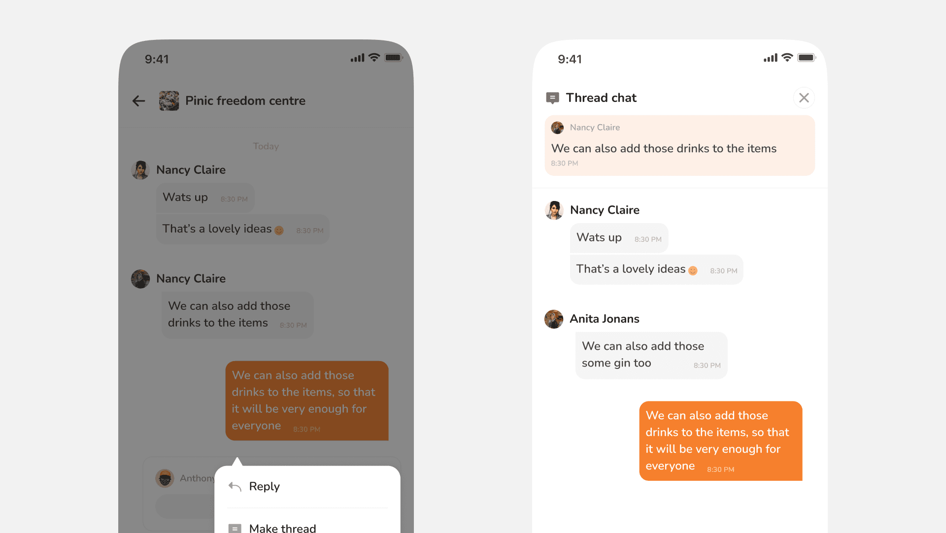 We all know how group conversations can be, some information go deep while some are just one level, to make the experience better, users can easily convert a chat to thread, so every reply to that is under the thread. We leverage on the existing pattern that works; “double tap” chat to activate pop-up to sell actions from like add to itinerary, reply, delete and “make thread”.