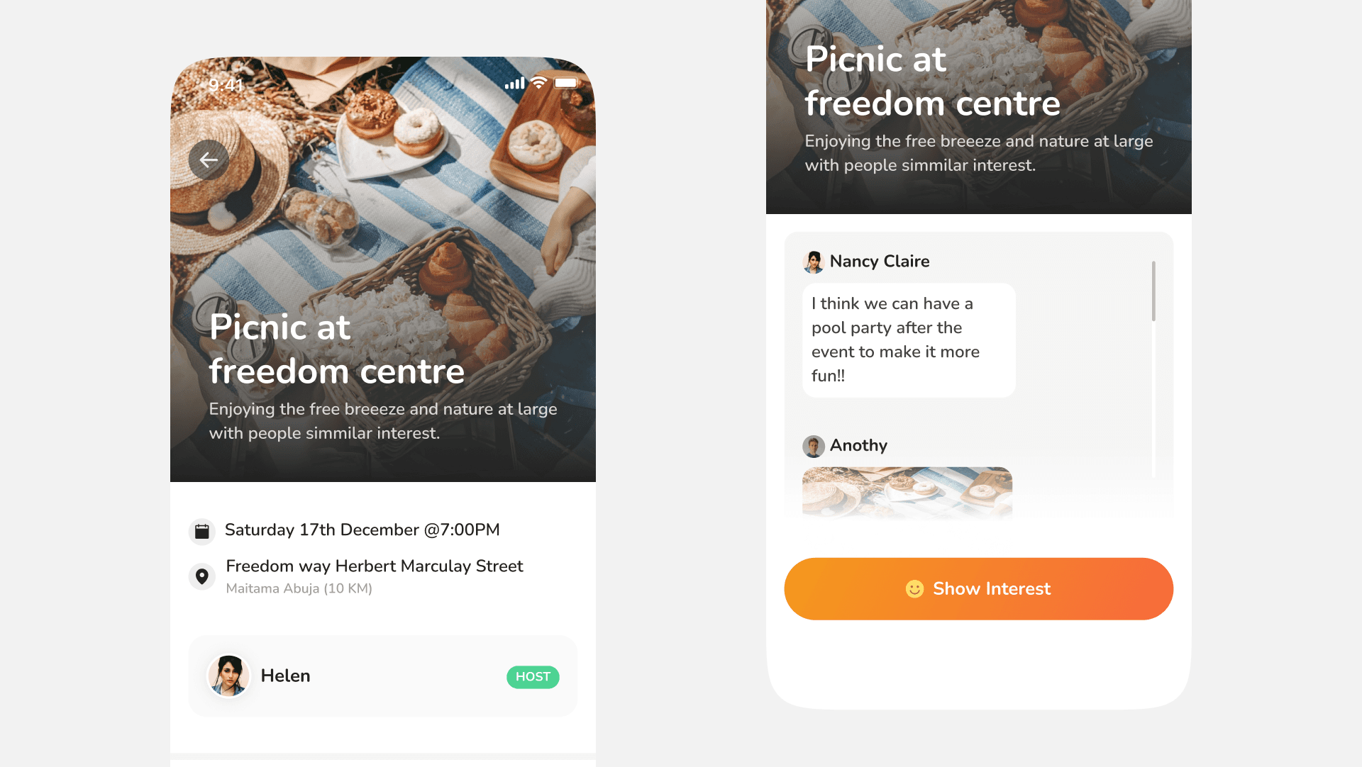 Users can easily see all details pertaining to the events, and if they want they can easily send interest to the creator.