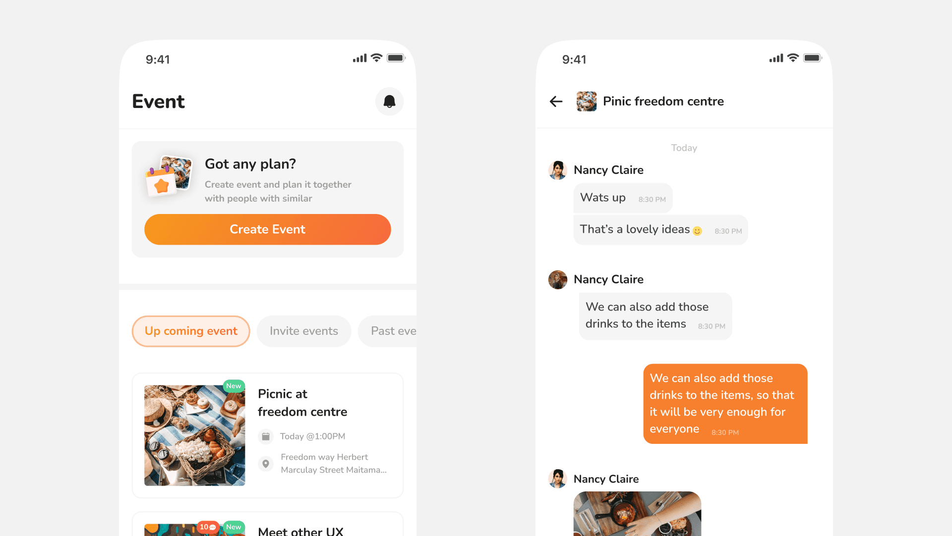 Once a user accept an invite or host approve user interest they are automatically added to a chat group where all plans are done by participants.
