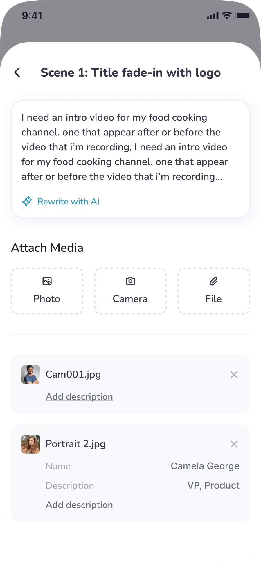 Users approve structure before visuals, reducing bad outputs and can also add media (including description).