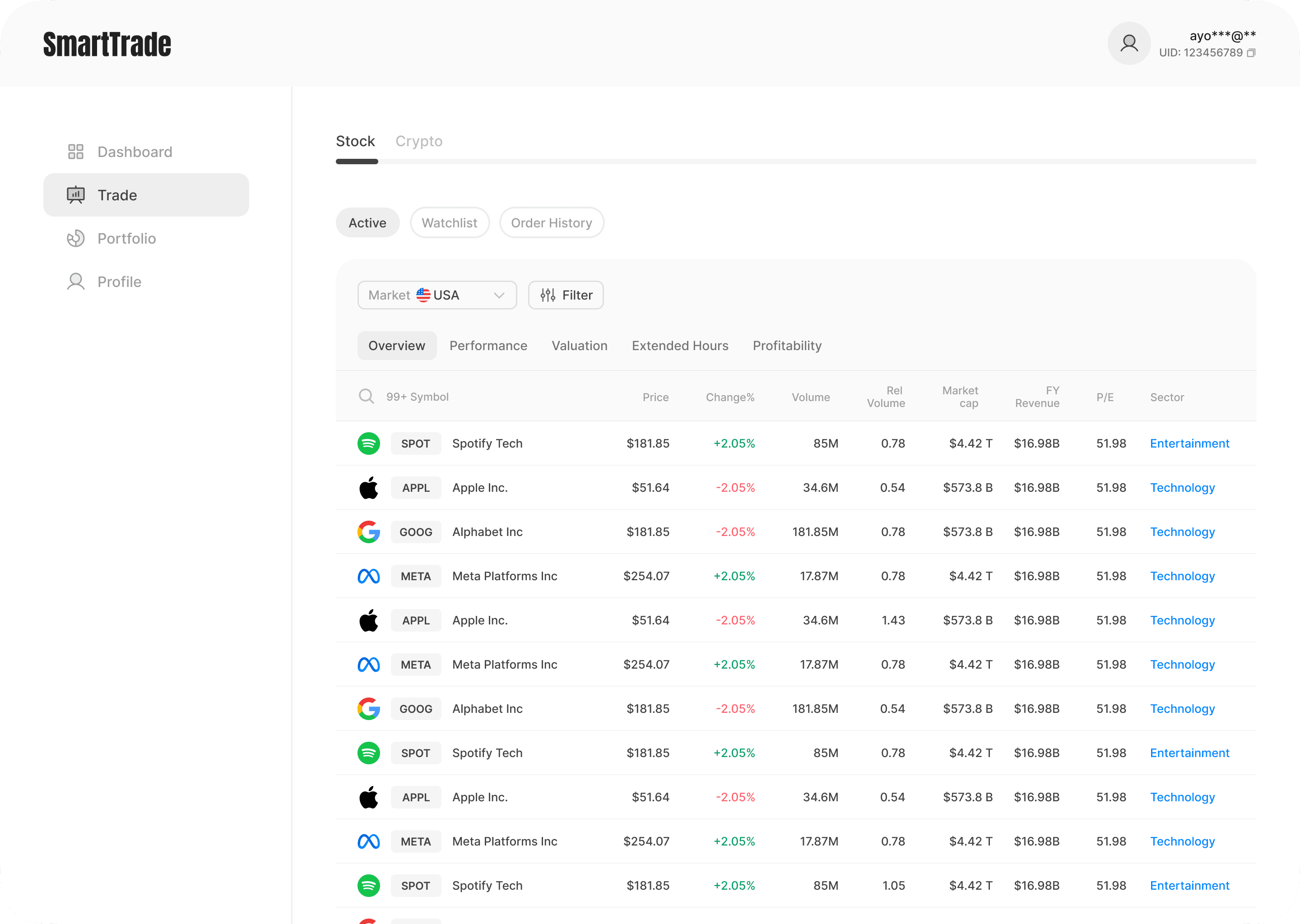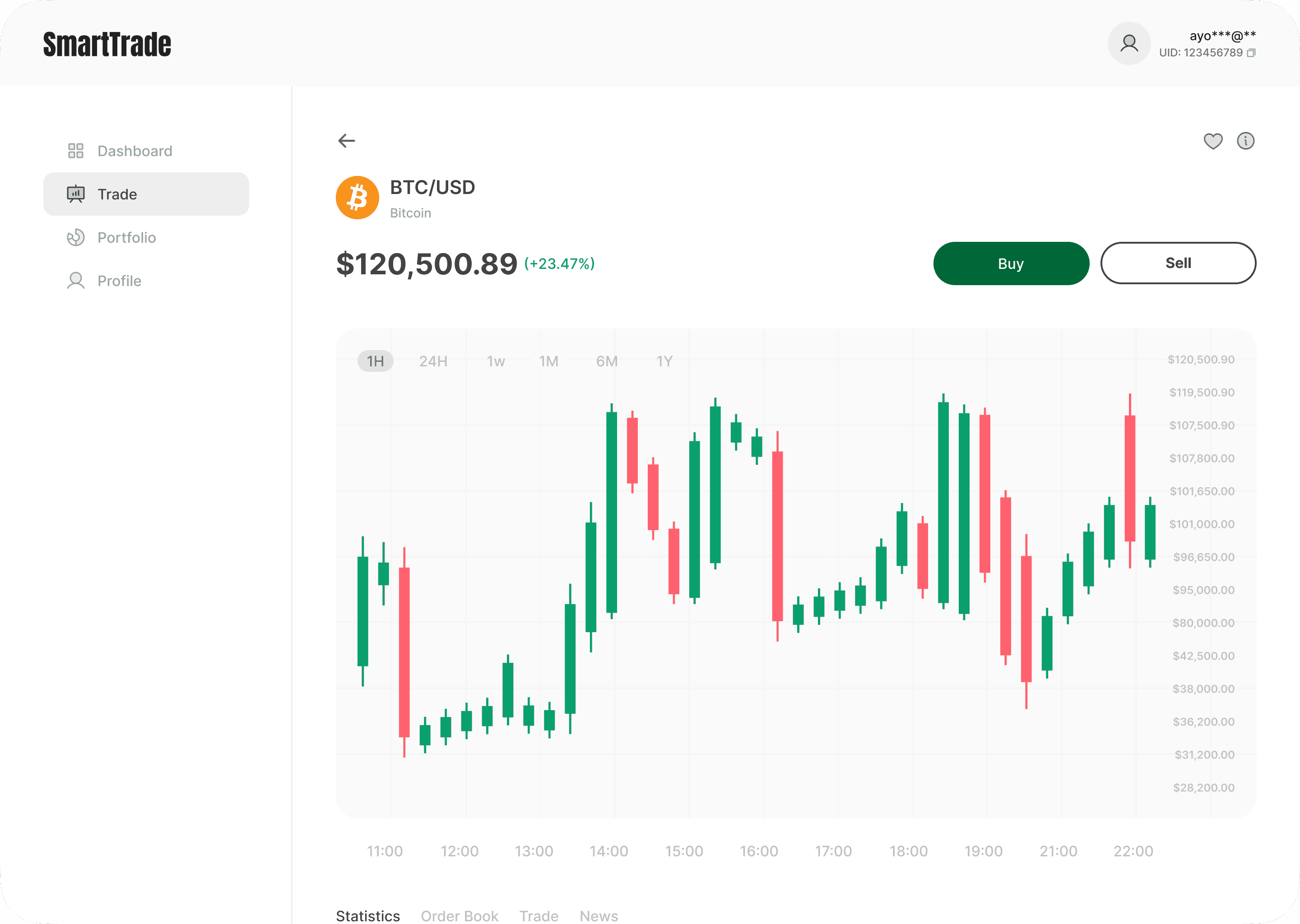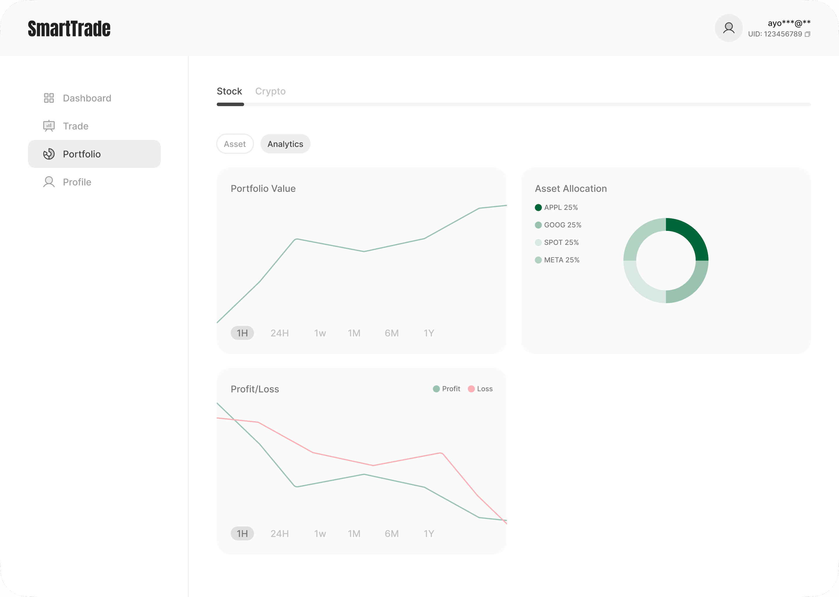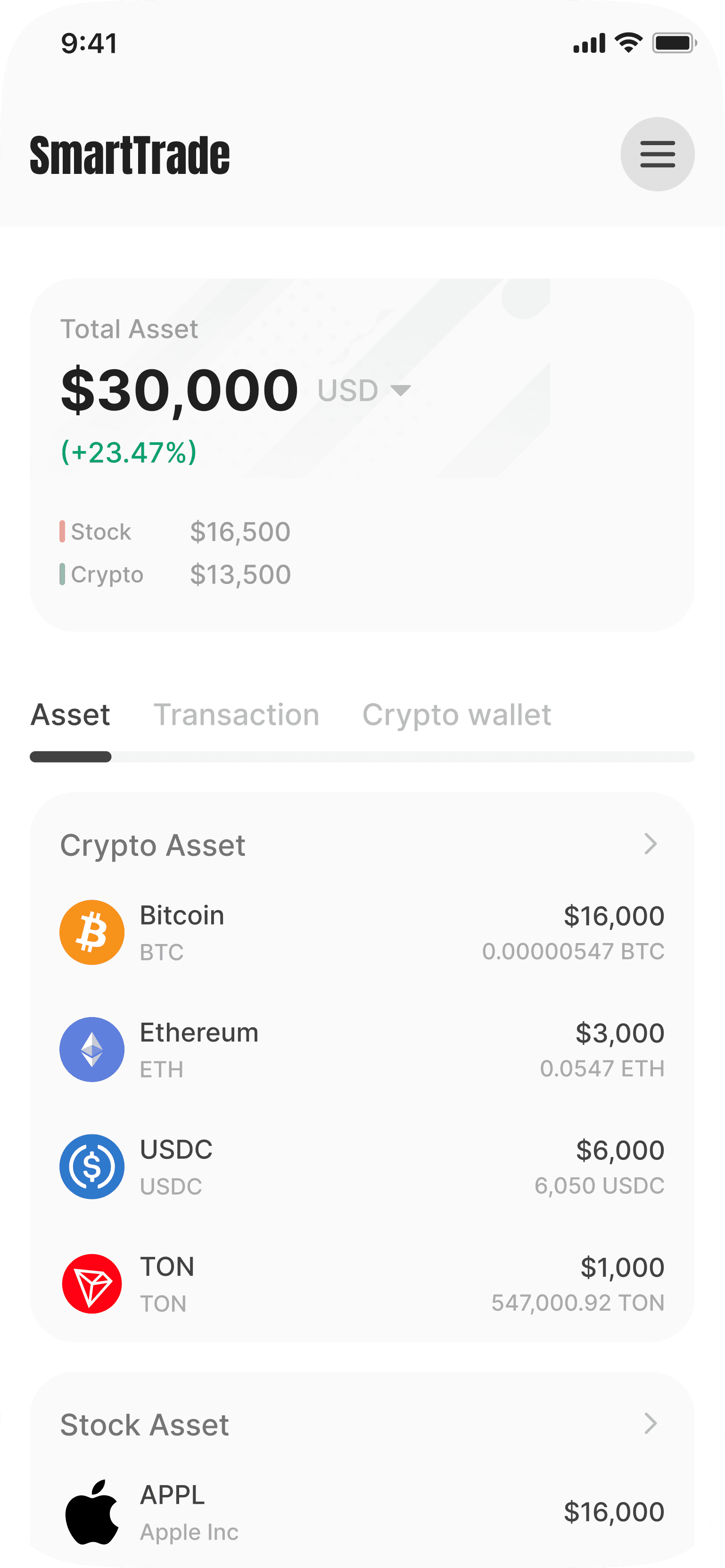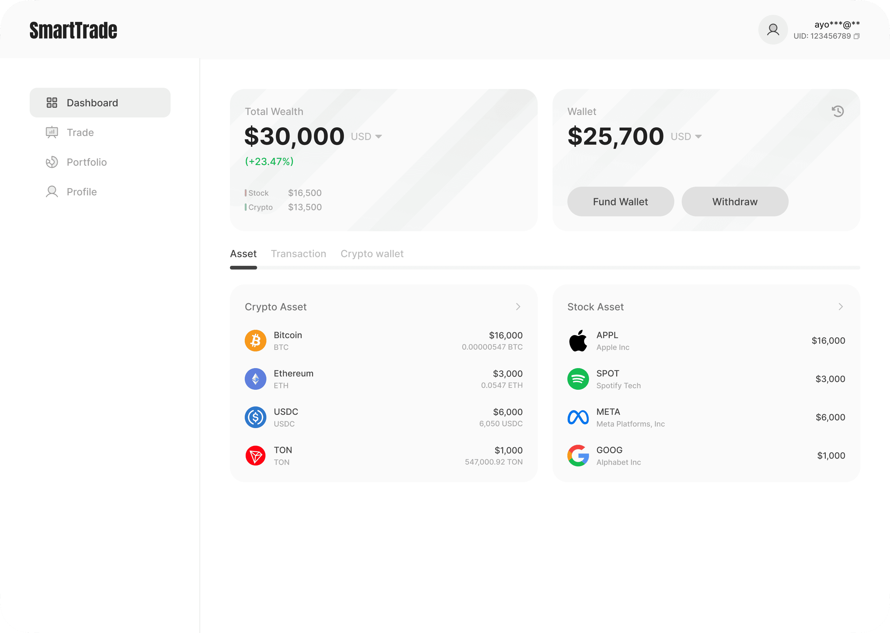 A unified crypto–stock trading platform that lets users buy, manage, and exit investments effortlessly—without traditional banking friction.