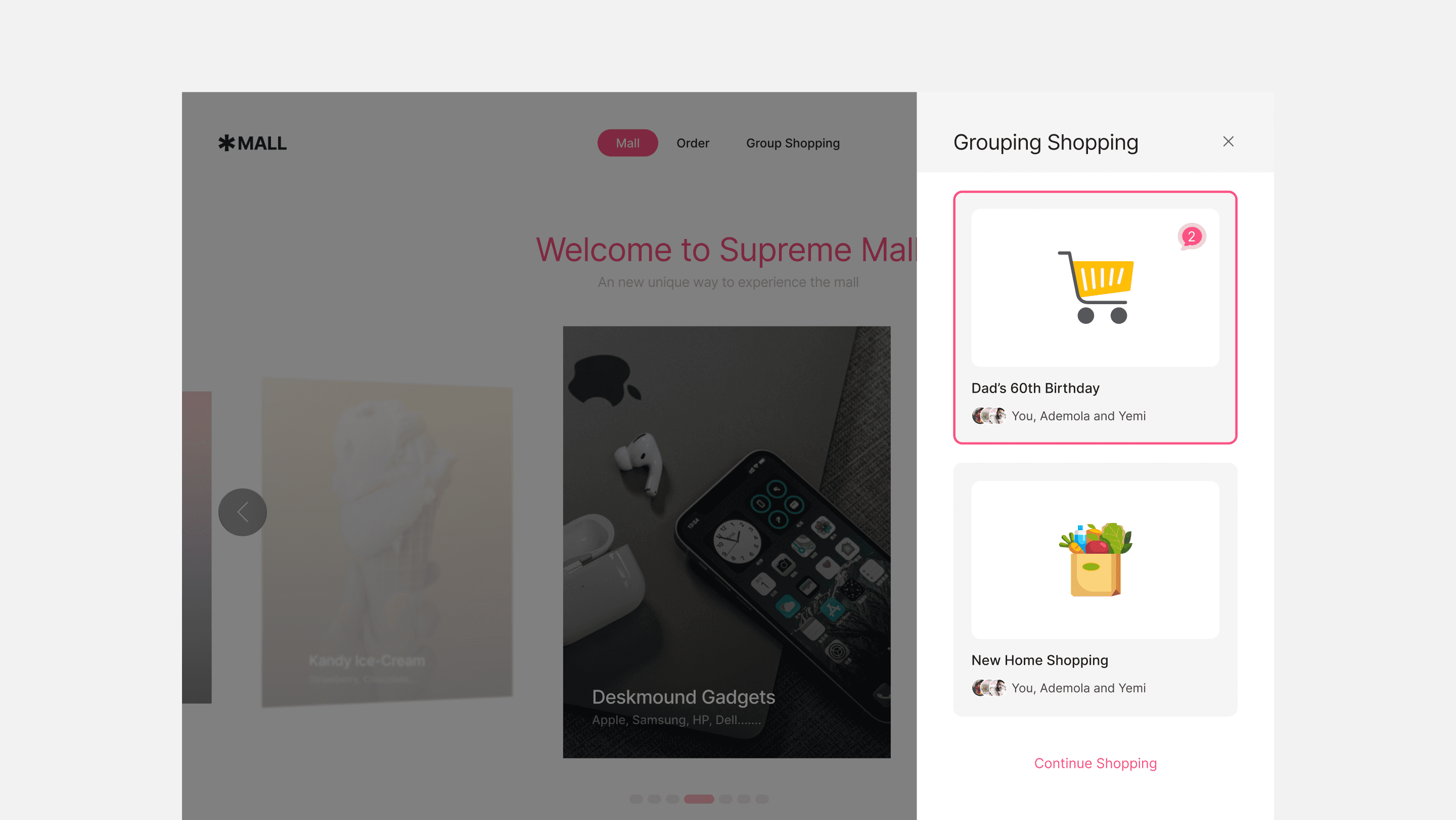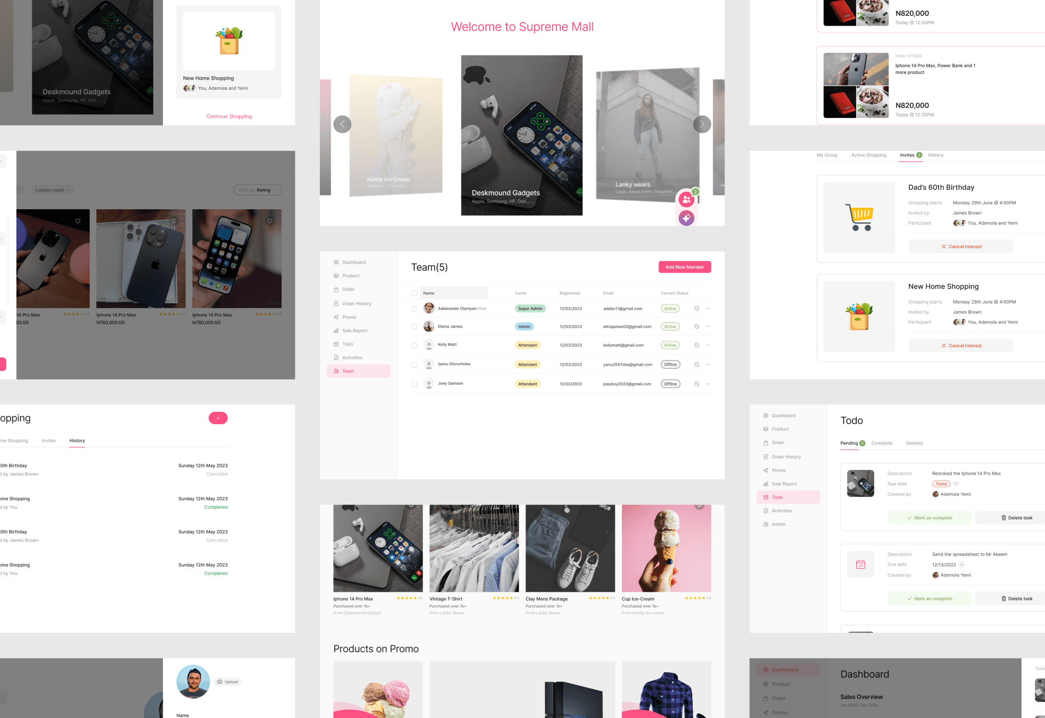 like Walmart, Ebay,Jumia, Konga, Ali Express among several others, we discovered that they are functional in terms of individual purchasing flow, but in terms of expanding the experience to group shopping is not there, which is one of the core feature of Supreme mall