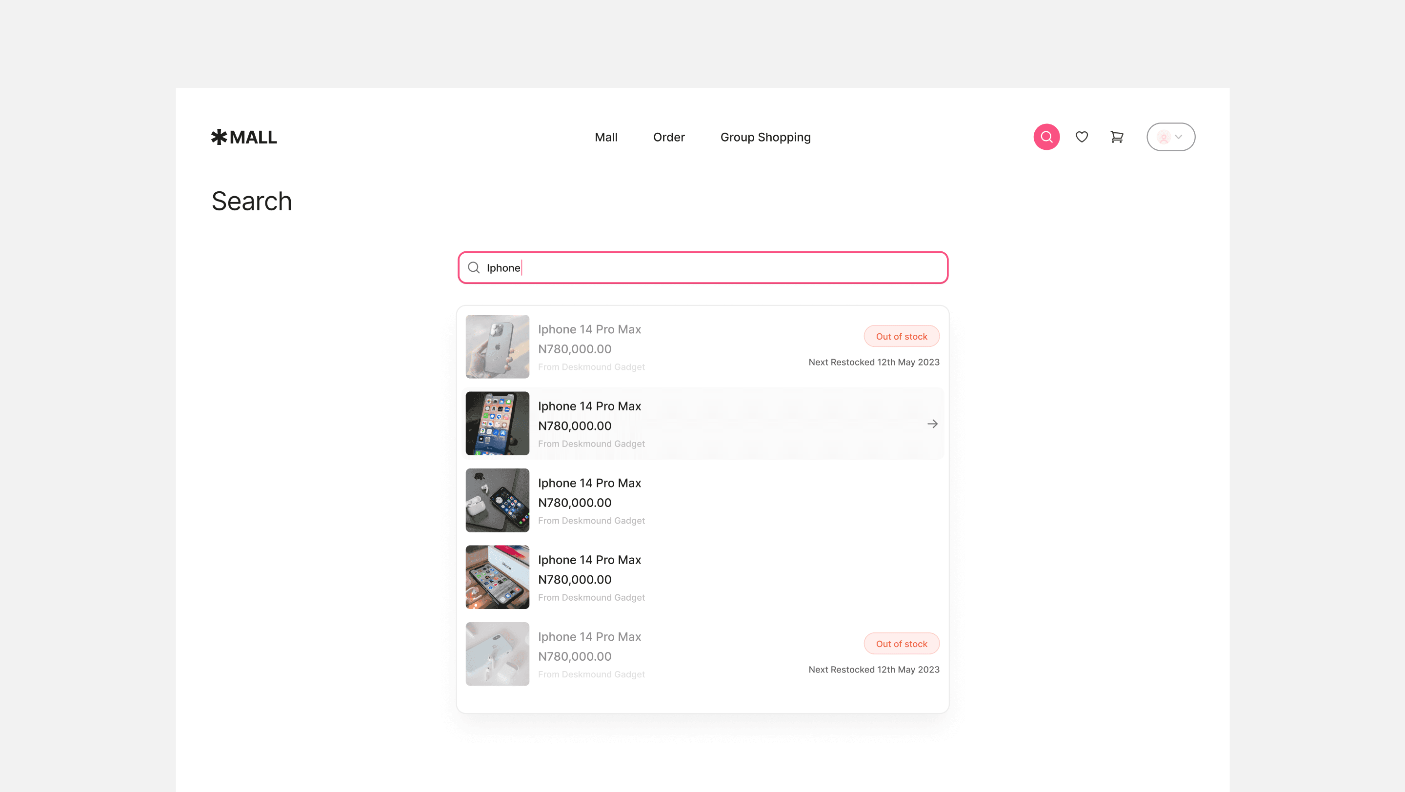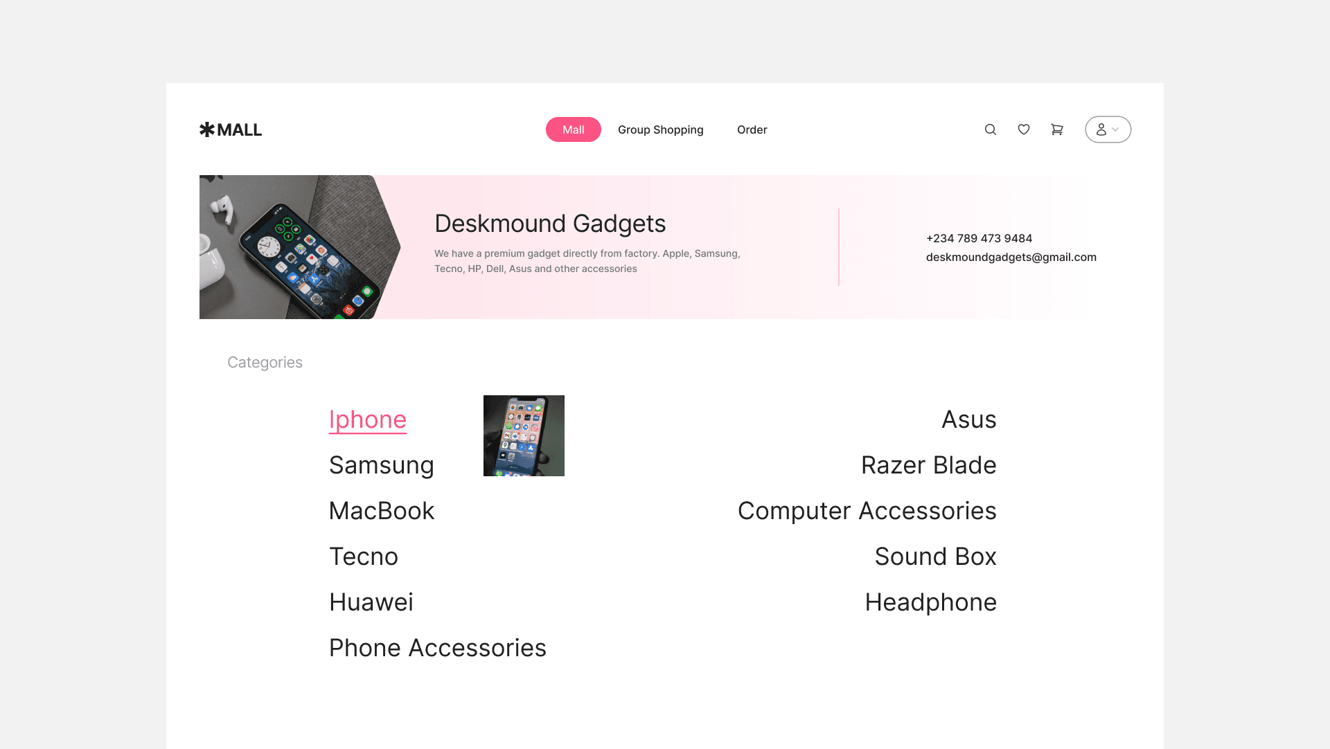 Once users are on the web app, they are presented with the stores available in the mall. This will allow users to quickly make purchase from the store of their choice instead of showing them product that will distract them.
