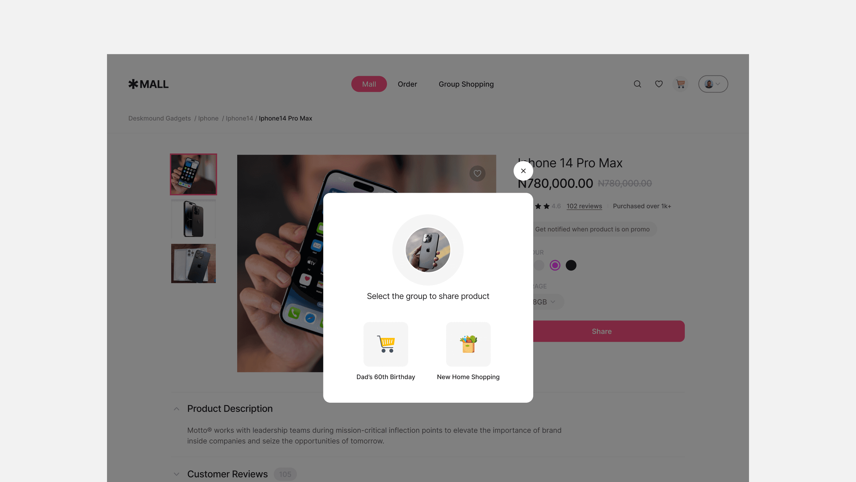 Edge case: Unregistered user can only join a group shopping as guest, which means they can’t add items to cart, they will have to share it to the group for registered user to add to cart.
