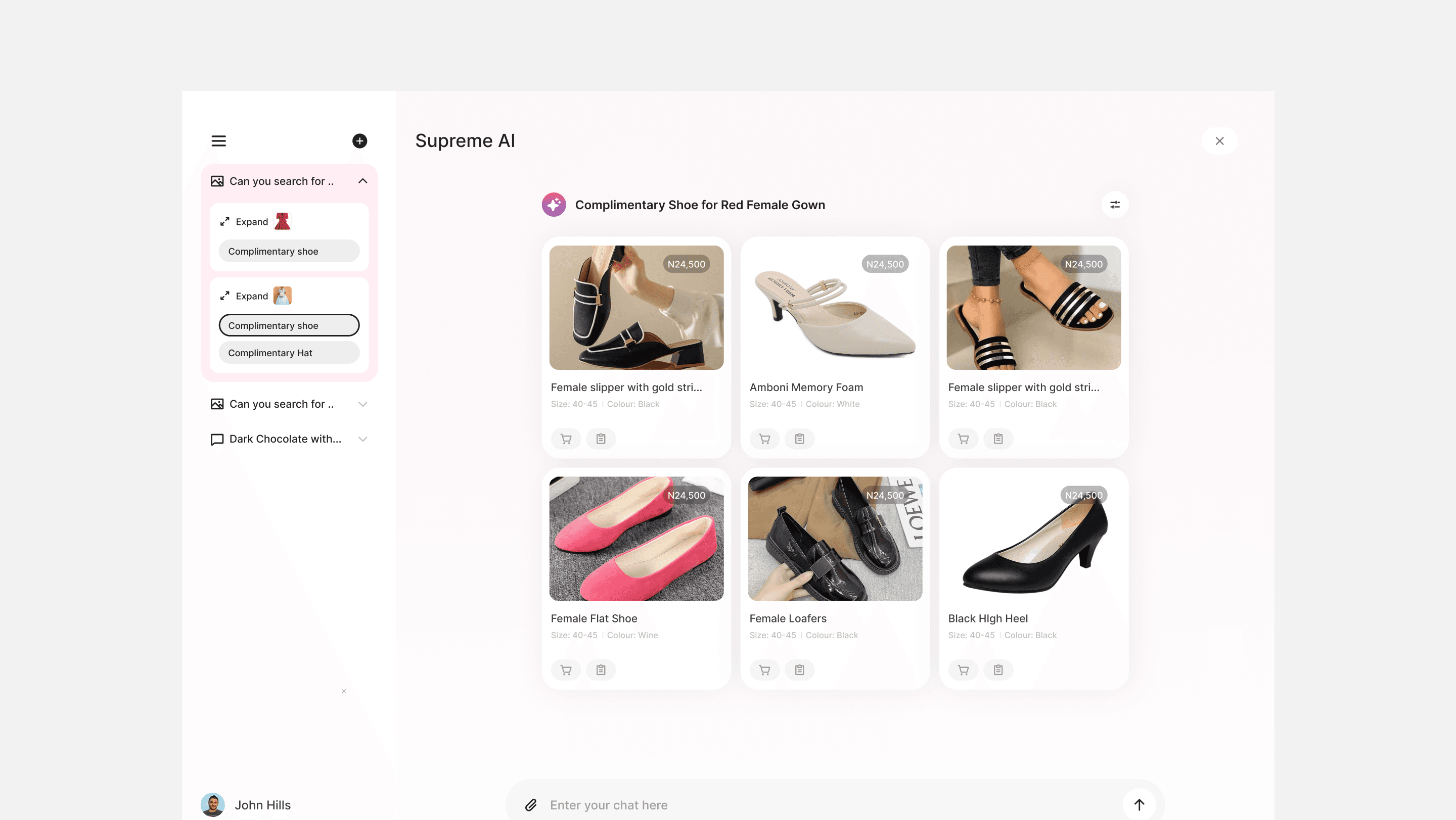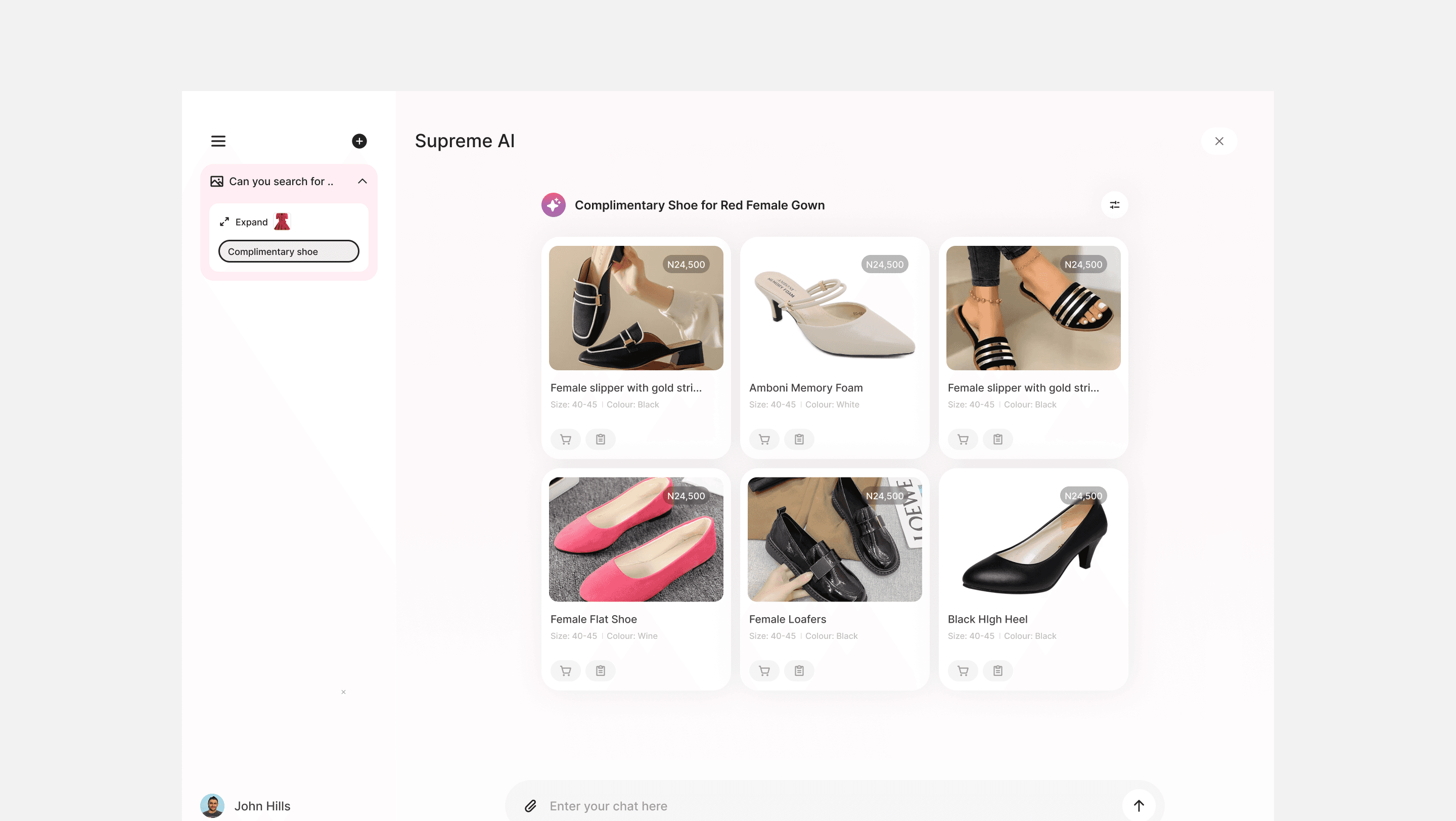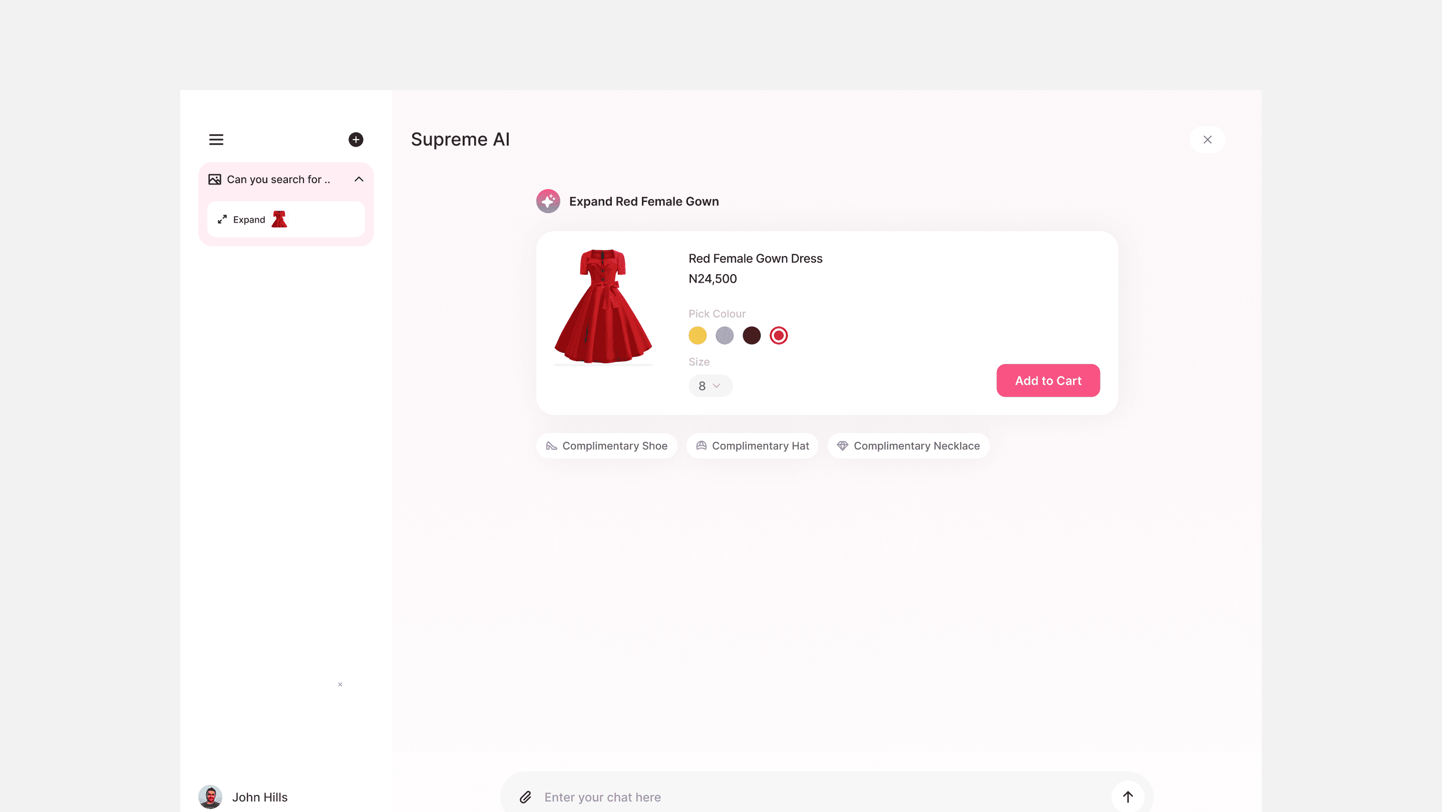 AI displaying shoes that compliment the dress. This expand feature was intuitively designed, because you can always select any dress and expand to see complimentary product and also, users can more than one complimentary product. It gives users the free to expand their purchasing options within a short period of time.